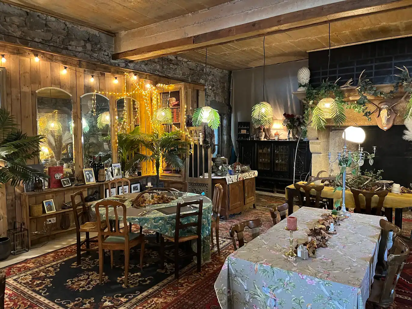Un lieu magique un décor digne d'un film des chambres incroyables des objets chines mis en scène ... Peu commun atypique du chien loup dans les couloirs le soir a la peine ombre des salons ... Bravo ! En revanche ne pas y aller en fin de saison maison froide pas nettoyée voire sale dans le espaces communs c'est ma fin de la saison et ça se sent quel dommage ! Mieux vaut refuser le client à ce compte là où le prévenir que la maison va hiberner et que donc ...pas de feu dans les cheminées pas de salon de thé ... Etc etc .. toutefois nous ne sommess pas partis car c'était magique puis on avait payé un bon prix pour trois nuits donc ...ça ne m'énpechera pas d'y revenir mais si mes conseils peuvent servir et aussi manger aller au village en bas chez Bastide incroyable rapport qualité et prix délicieux ++++ et convivial au dessus du bar du village